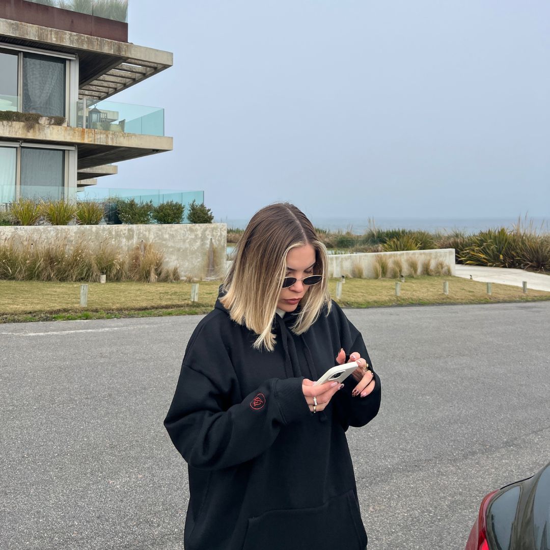El canguro oversize Pikante en Negro está hecho con un 80% de algodón, garantizando suavidad y comodidad. Presenta detalles bordados en el frente y la manga que aportan un toque exclusivo, mientras que en la espalda luce un diseño grande en DTF que destaca su estilo único. Perfecto para quienes buscan una prenda cómoda y con personalidad.
